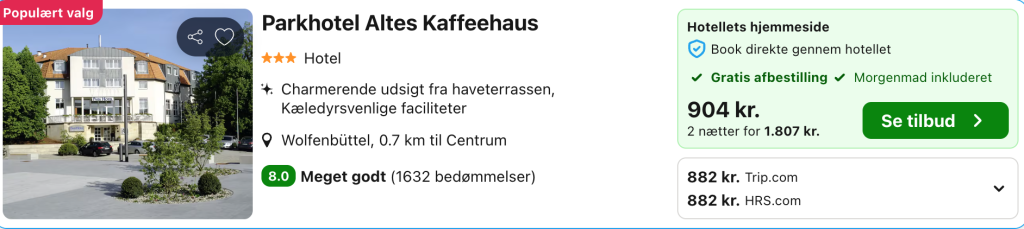 Forlænget weekend i Wolfenbüttel for kun 882,- per person inkl. godt hotel med morgenmad og central beliggenhed!