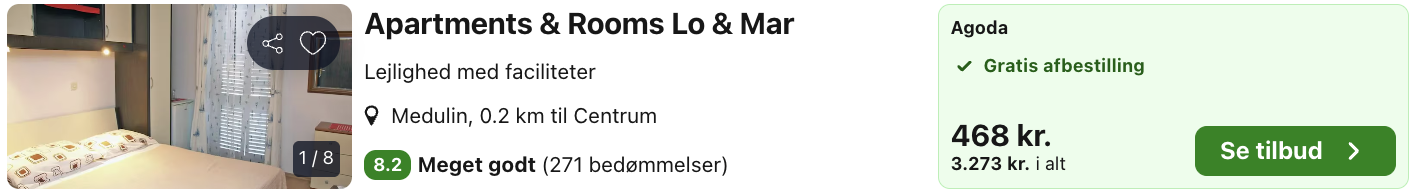 Apartments & Rooms Lo & Mar ligger i Medulin nær Pula og er et hyggeligt og afslappende sted at bo på den kroatiske Istrien-kyst. Her bor du tæt på smukke strande, krystalklart vand og med nem adgang til både Medulins ferieatmosfære og Pulas historiske seværdigheder, herunder den berømte romerske arena.
