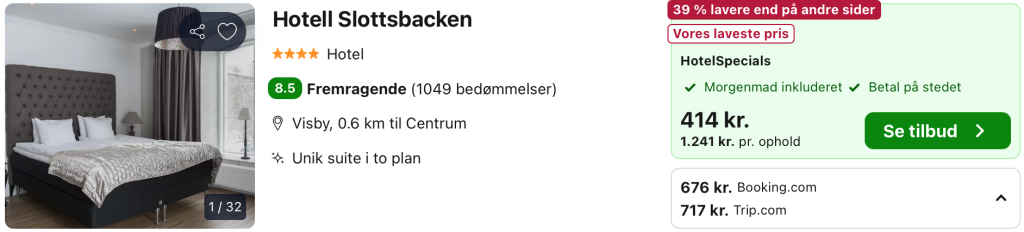 Husk at logge ind / oprette en gratis bruger på trivago samt hos hoteludbyderen. Derved opnås den bedste pris!