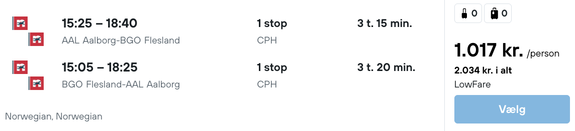 Flyprisen inkluderer kun en lille taske, men bagage kan tilkøbes.