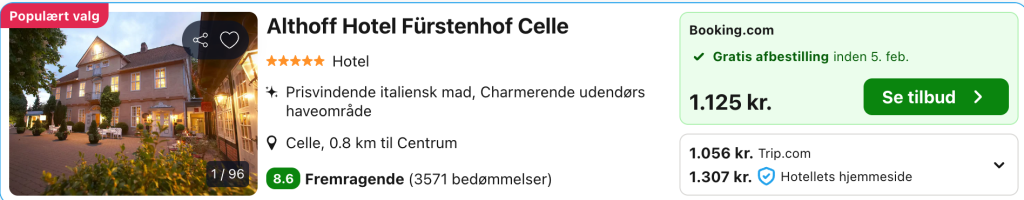 Althoff Hotel Fürstenhof i Celle er indbegrebet af klassisk luksus og historisk atmosfære. Hotellet ligger i en fortryllende barokbygning fra 1600-tallet og byder på en oplevelse, hvor charme, elegance og forkælelse går hånd i hånd. Her bor du midt i Celles hyggelige gamle bydel, omgivet af brostensbelagte gader og smukke bindingsværkshuse, og med det eventyrlige slot lige om hjørnet.
