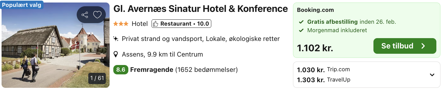 Vælg booking.com på trivago og opret en gratis bruger eller log ind. Derved opnås den billigste pris.