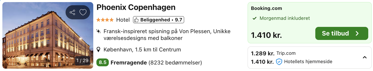 Bemærk: Den samlede pris for opholdet er 1.289,- for 2 personer i et dobbeltværelse med morgenmad, hvilket svarer til 645,- per person. Rejs365 er ikke et rejsebureau, men en rejseside der finder gode tilbud! – Vi modtager kommission, men det påvirker ikke din pris! Læs mere her |