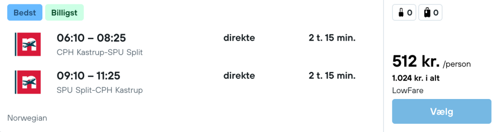 Hvis rejsen er med “Vis rejse” link, så er der tale om en pakkerejse, hvor fly og hotel bestilles på en gang.