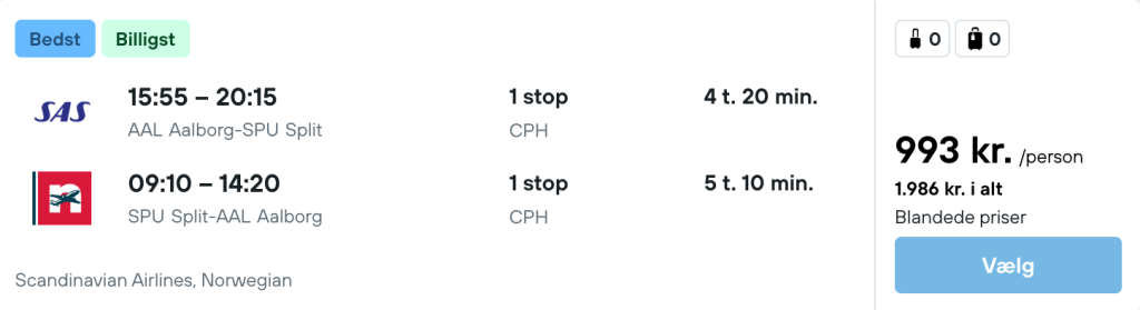 På vores flysøgemaskine har vi fundet billige flybilletter fra København og Aalborg til Split/Brac.