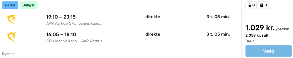 Vi har på vores flysøgningsmaskine fundet billige billetter fra Aarhus og København til Korfu: