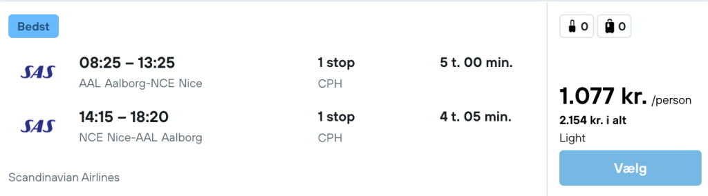 Flyprisen inkluderer kun en lille taske, men bagage kan tilkøbes.