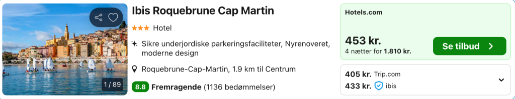 5 dage i Menton for kun 1.477,- per person inkl. fly og godt 3-stjernet hotel!