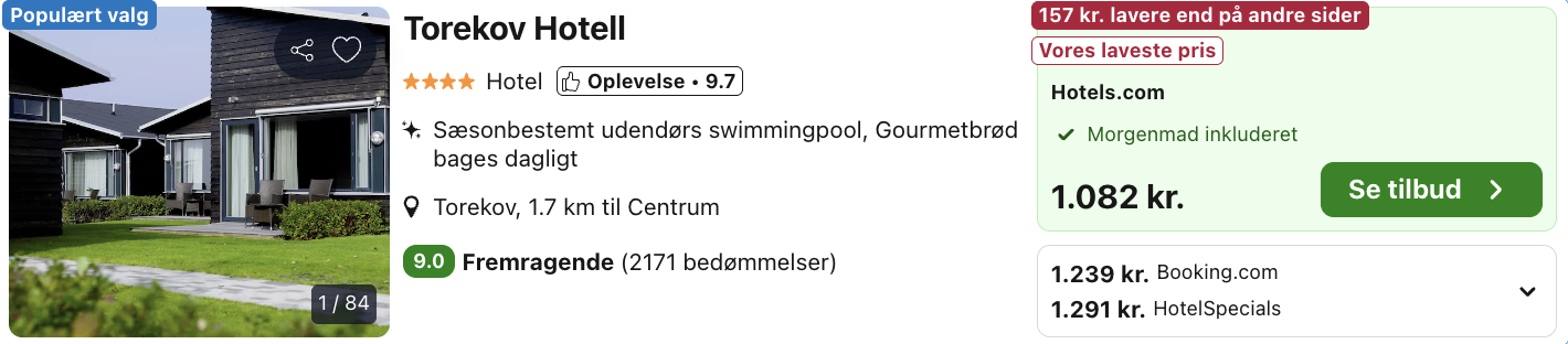 | Bemærk: Den samlede pris for opholdet er 1.082,- for 2 personer i et dobbeltværelse, hvilket svarer til 541,- per person.