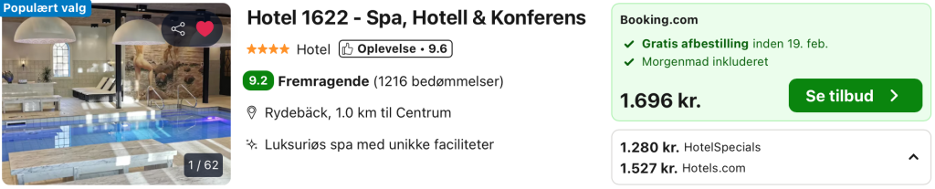 Vi har taget udgangspunkt i et ophold fra den 21. – 22. februar på Hotel 1622, der er et eksklusivt boutique- og spahotel i Rydebäck, nær Helsingborg. Med kun 34 stilfulde værelser, luksuriøse spa-faciliteter og de anerkendte restauranter Tegel og Crazy Thai, tilbyder hotellet en afslappende oplevelse tæt på havet og Rya Golfklub.