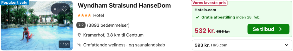 ![]() Bemærk: Den samlede pris for hotellet er 465,- for 2 personer i et dobbeltværelse, hvilket svarer til 233,- Per person. Dagsadgang til badelandet Hansedom koster 30 Euro for en voksen hvilket svarer til 224,-danske kroner og bestilles direkte hos hotellet. Rejs365 er ikke et rejsebureau, men en rejseside, der finder gode tilbud! – Vi modtager kommission, men det påvirker ikke din pris! Læs mere her |