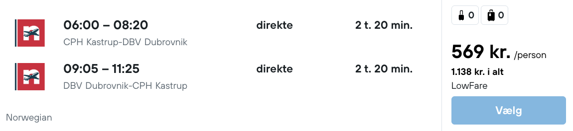 Vi har fundet billige flybilletter fra København til Dubrovnik: