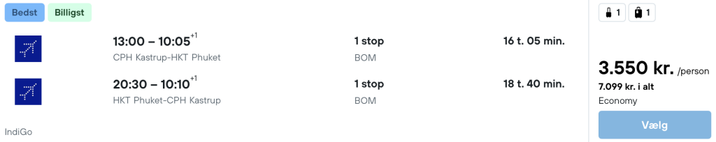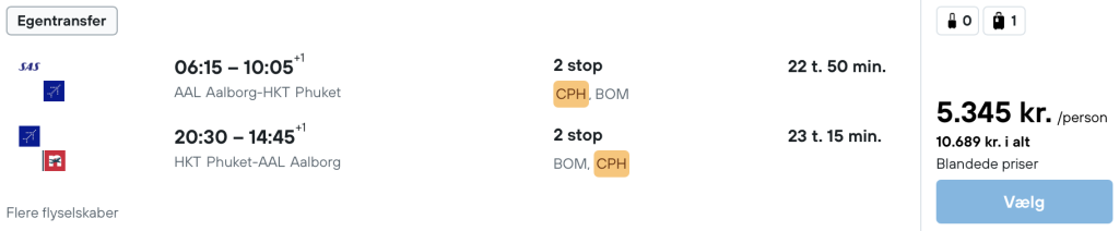 Hvis rejsen er med “Vis rejse” link, så er der tale om en pakkerejse, hvor fly og hotel bestilles på en gang.