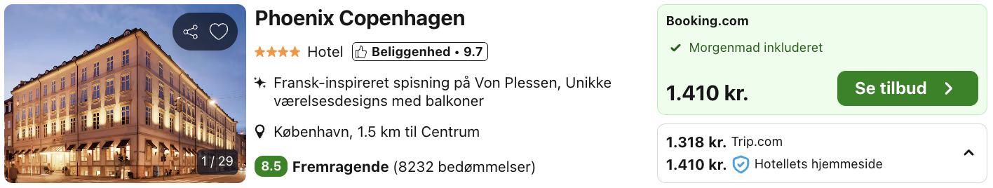 Bemærk: Den samlede pris for opholdet er 1.318,- for 2 personer i et dobbeltværelse med morgenmad, hvilket svarer til 659,- per person. Rejs365 er ikke et rejsebureau, men en rejseside der finder gode tilbud! – Vi modtager kommission, men det påvirker ikke din pris! Læs mere her |