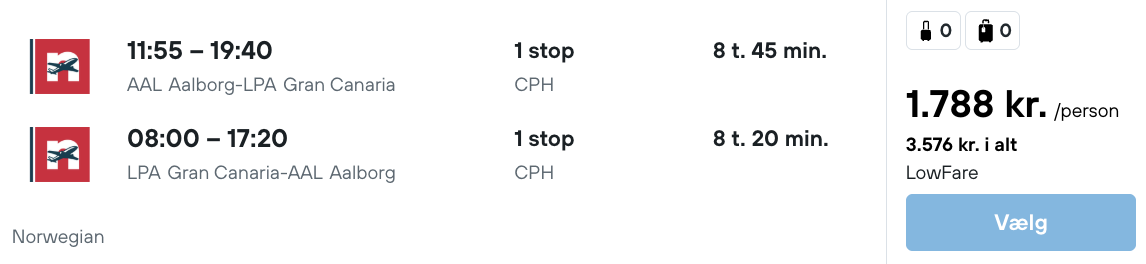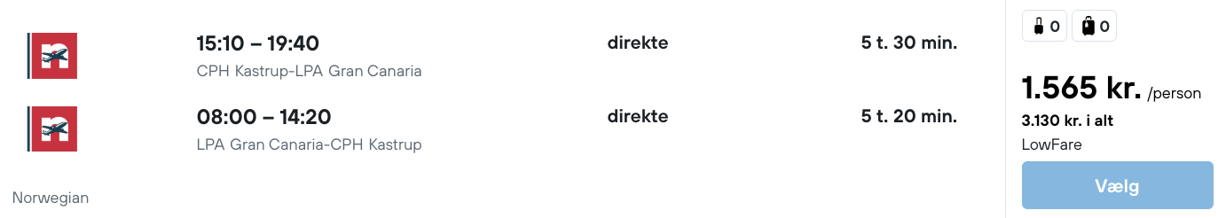 Vi har fundet billige billetter fra København til Gran Canaria: