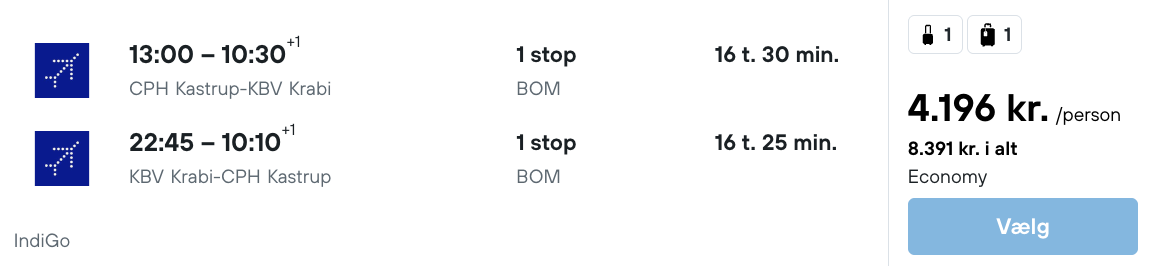 På vores flysøgemaskine har vi fundet billige billetter fra København til Krabi.