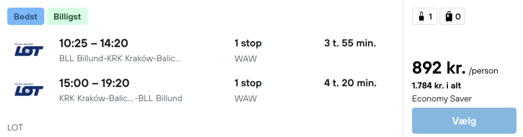 På vores flysøgningsmaskine har vi fundet billige flybilletter fra Billund og København til Krakow: