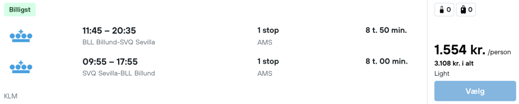 På vores flysøgemaskine har vi fundet billige flybilletter fra København, Aalborg og Billund til Sevilla: