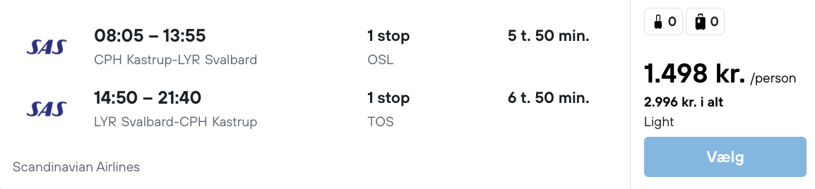På vores flysøgningsmaskine har vi fundet billige flybilletter fra København til Svalbard: