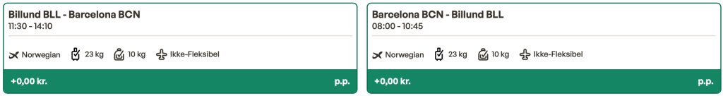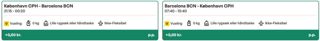 Flyprisen inkluderer en lille taske samt en indtjekket bagage.