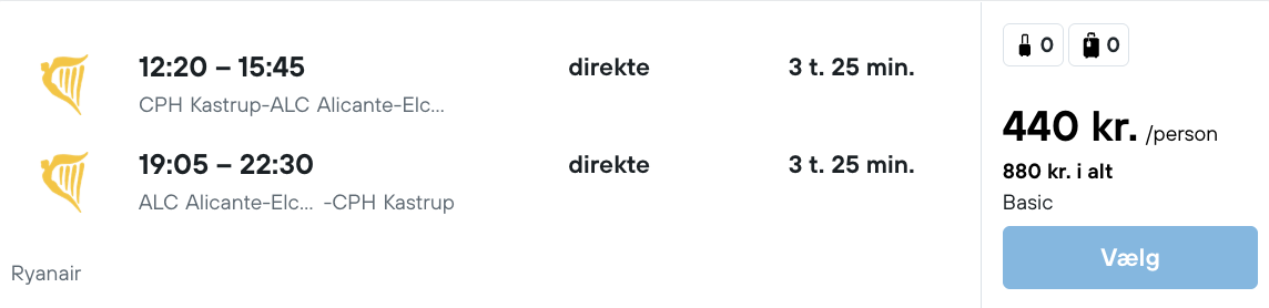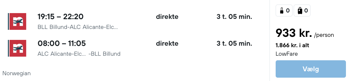 Flyprisen inkluderer kun en lille taske, men bagage kan tilkøbes.