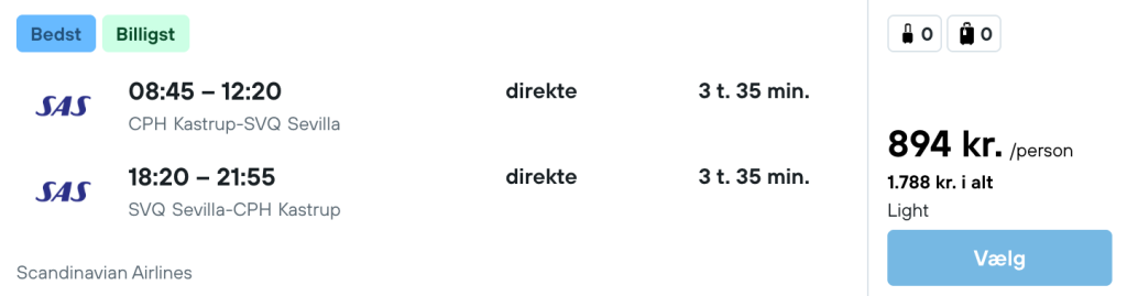 På vores flysøgemaskine har vi fundet billige flybilletter fra Billund til Sevilla: