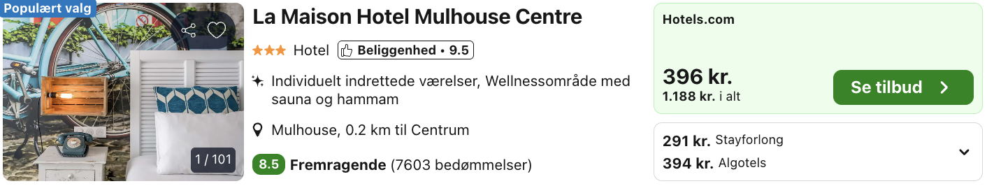 4 dages forlænget weekend i Mulhouse for kun 877,- per person inkl. fly og godt 3-stjernet hotel med god beliggenhed!