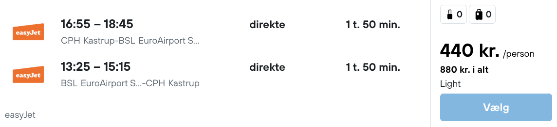 Flyprisen inkluderer kun en lille taske, men bagage kan tilkøbes.