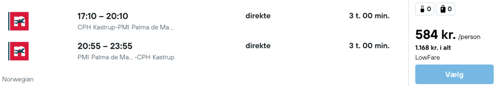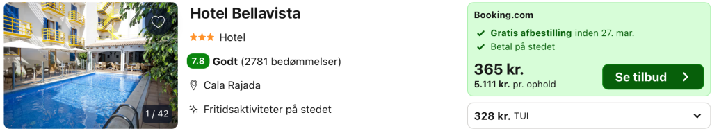 Hvis rejsen er med “Vis rejse” link, så er der tale om en pakkerejse, hvor fly og hotel bestilles på en gang.