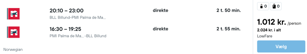 Flyprisen inkluderer kun en lille taske, men bagage kan tilkøbes.