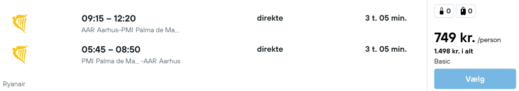 På vores flysøgemaskine har vi fundet billige flybilletter fra København, Aalborg, Aarhus og Billund til Mallorca: