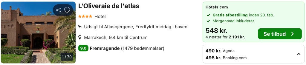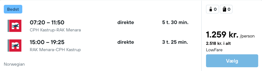 På vores flysøgemaskine har vi fundet billige flybilletter fra København til Marrakech:
