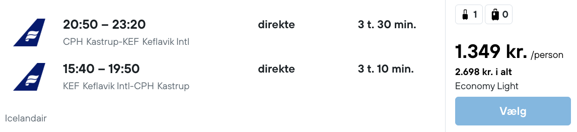 På vores flysøgningsmaskine har vi fundet billige flybilletter fra København og Billund til Island: