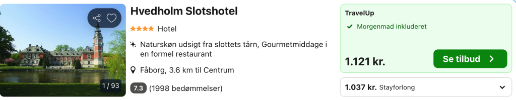 Ophold på smukke Hvedholm Slot for kun 519,- per person inkl. morgenmad!