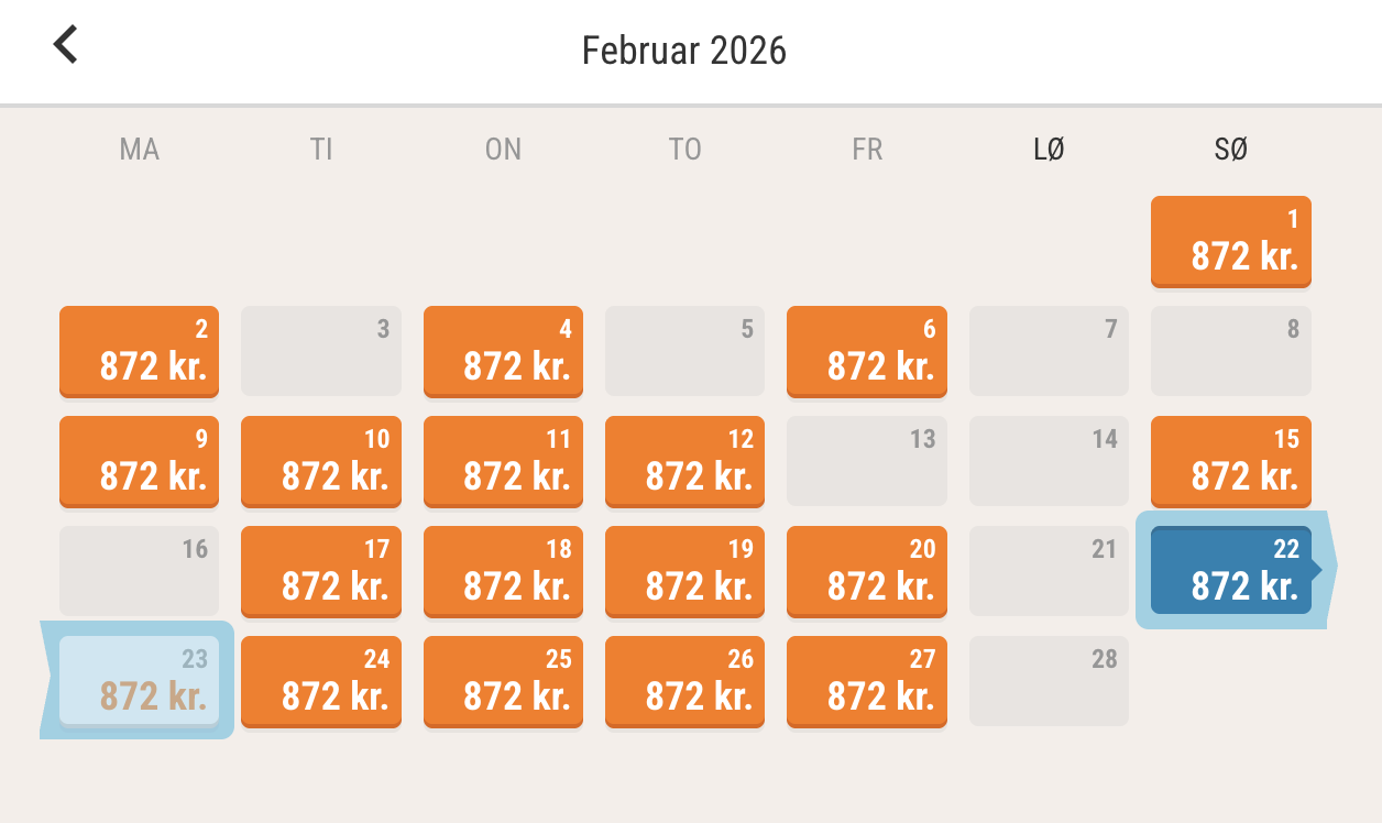 Der er flere alternative datoer til samme pris.