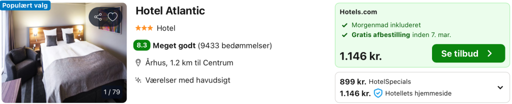 Vi har taget udgangspunkt i et weekendophold fra den 7. – 8. marts på Hotel Atlantic, der ligger centralt ved havnefronten i Aarhus, kun få minutters gang fra Store Torv og byens centrum. Hotellet har 102 værelser med udsigt til enten byen eller havnen, hvor alle værelser er udstyret med egen balkon, gratis Wi-Fi, Chromecast og private badefaciliteter.