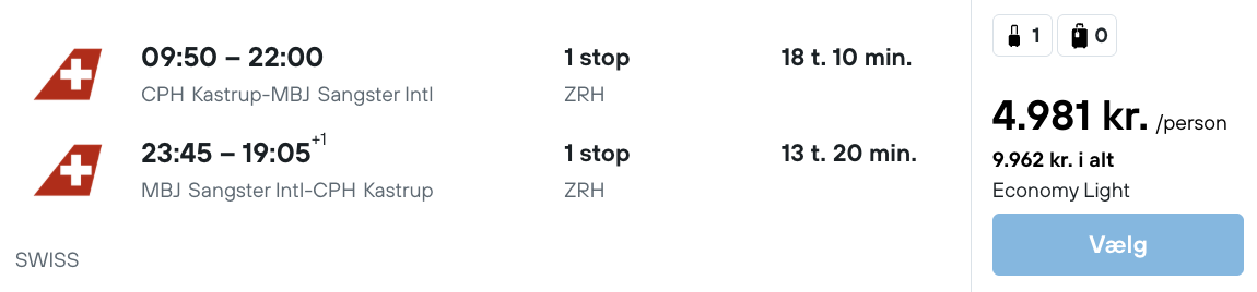 | I ALT | 8.892,- | Pris pr. person ved 2 personer |