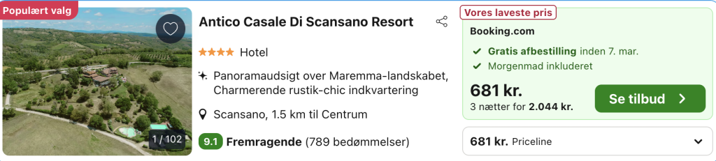 Hvis rejsen er med “Vis rejse” link, så er der tale om en pakkerejse, hvor fly og hotel bestilles på en gang.