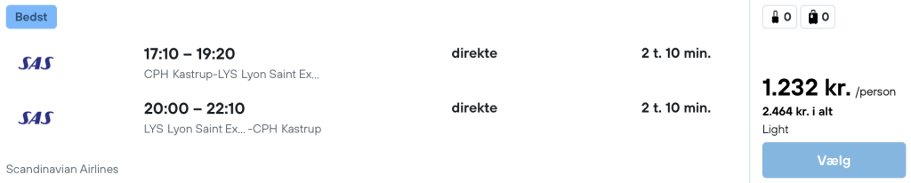 Flyprisen inkluderer kun en lille taske, men bagage kan tilkøbes.