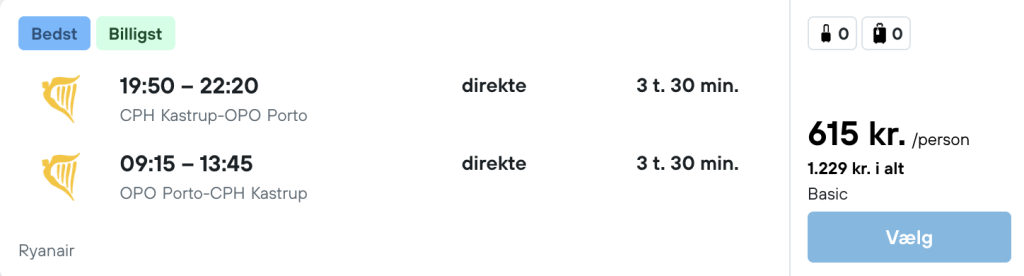 Vi har fundet billige flybilletter fra København til Porto: