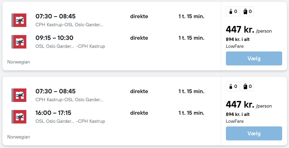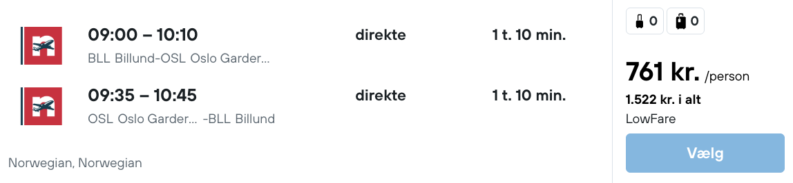 På vores flysøgemaskine har vi fundet billige flybilletter fra København og Billund til Oslo:
