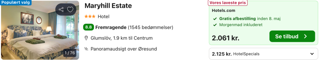 Vi har taget udgangspunkt i et ophold fra 10. – 11. maj på Maryhill Estate, der ligger lige nord for Landskrona, med sit fyrige glimt over Øresund og øen Ven i horisonten. Hotellet ligger som en skjult oase, hvor historien lever i smuk symbiose med moderne luksus. Det gamle Örenäs Slot, opført i begyndelsen af det 20. århundrede og nænsomt restaureret, omfavner to helt særlige verdener: Hill House – slotsets historiske hjerte med elegante barer, gastronomiske oplevelser og kun 16 værelser med udsigt over pool og hav – og Sugar Club – et lyst, levende retreat med 147 designede værelser, flere opvarmede pools, loungesenge og pejsestemning året rundt.