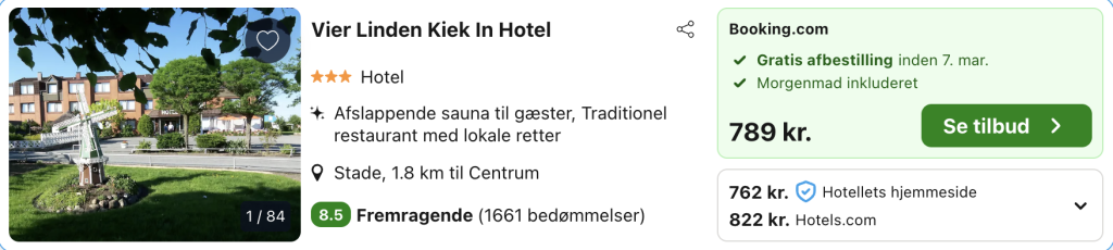 Weekendophold i hyggelige Stade for kun 381,- per person inkl. godt hotel med morgenmad!