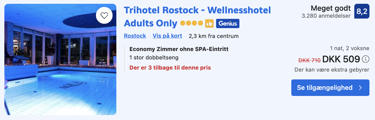 Weekendophold på 4-stjernede Trihotel ved Rostock for kun 255,- per person. – Hotellet er kun for voksne!