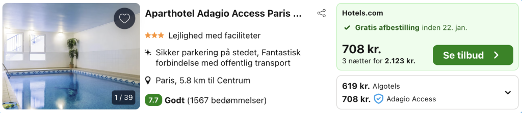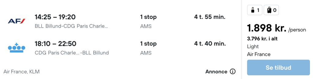 Tjek altid datoerne for at se om de passer sammen før du bestiller, da vi kan have begået fejl. Tjek derudover også prisen på begge ting før du bestiller det ene, da prisen kan have ændret sig. Der kan også være små variationer i prisen mellem mobil og pc.