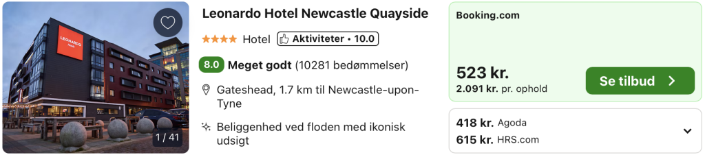 5 dage i Newcastle for kun 1.854,- per person inkl. fly og 4-stjernet hotel med god beliggenhed!