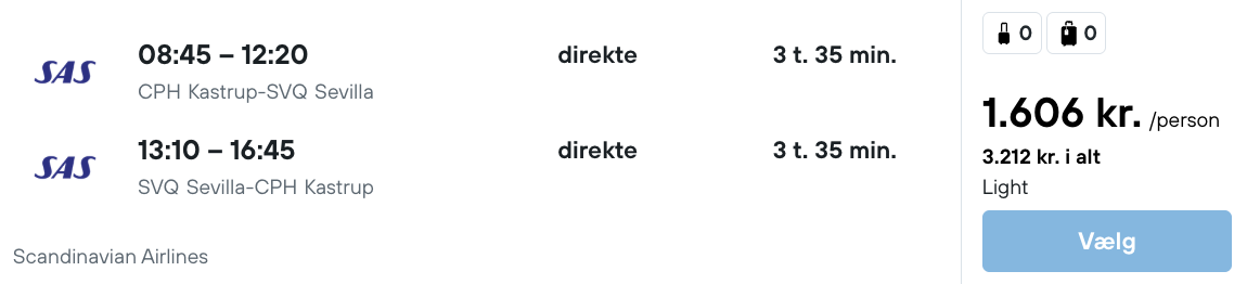 På vores flysøgemaskine har vi fundet billige flybilletter fra København til Sevilla: