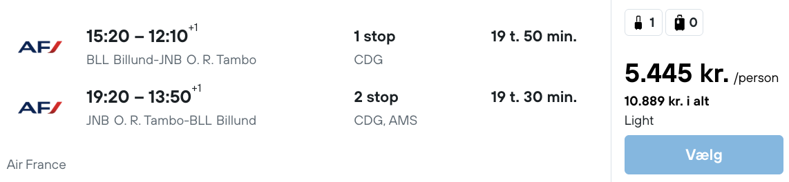 På vores flysøgemaskine har vi fundet billige flybilletter fra København og Billund til Johannesburg.