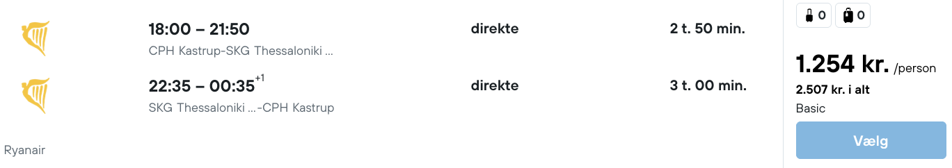 På vores flysøgemaskine har vi fundet billige flybilletter fra København til Thessaloniki: