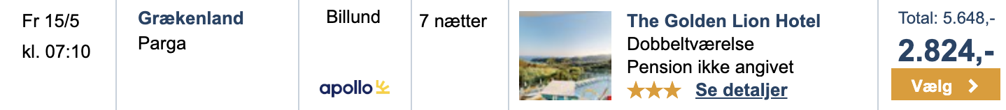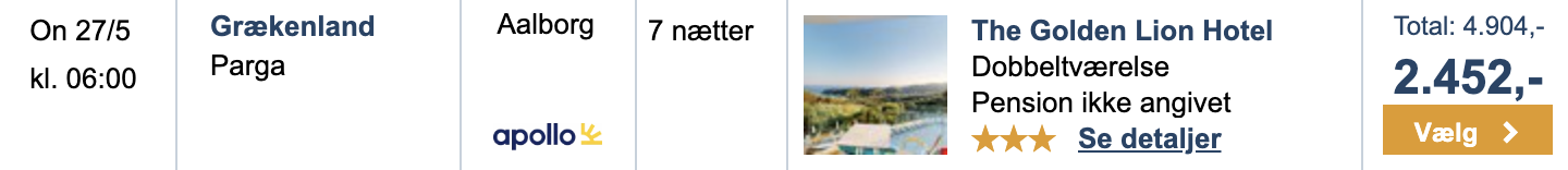 Hos Travelmarket har vi fundet gode tilbud med Apollo fra Aalborg og Billund til Parga: